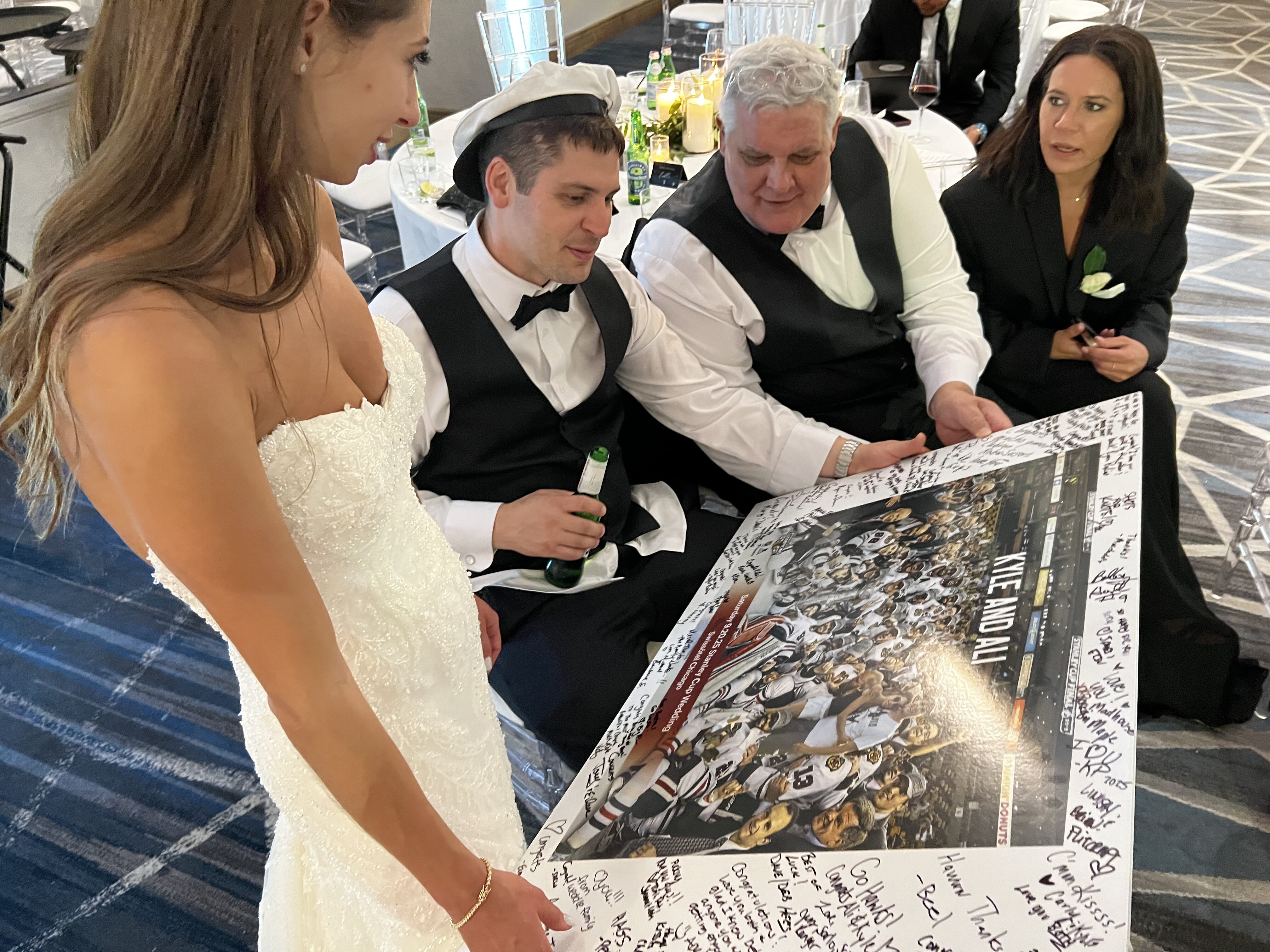 He even came up with a unique wedding gift that was tied to the beginnings of our relationship – a pair of ice skates for everyone to sign! It was perfect.